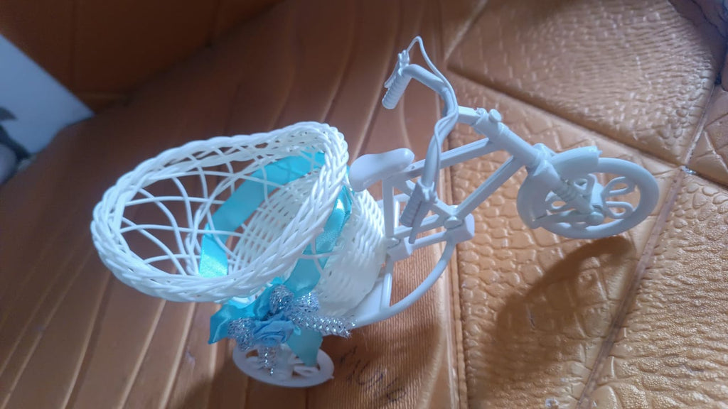 decorative basket, artificial flower pot, tricycle planter, storage basket,multipurpose decor basket, gifting basket,home decor piece,tricycle shape basket, plastic flower holder, white cycle decor, mini cycle planter