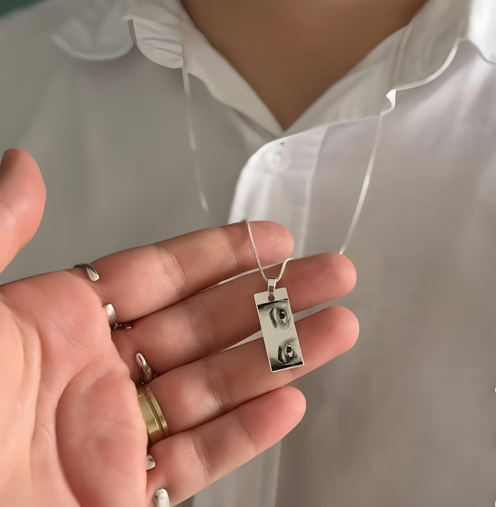 This exquisite necklace features a personalized engraving of an eye, making it a truly unique piece of jewelry. Perfect for commemorating special moments, this pendant can be customized with a photo that holds sentimental value. Crafted with precision, it’s an ideal gift for birthdays, anniversaries, or any special occasion. Show your loved ones how much they mean to you with this thoughtful and stylish accessory that’s sure to be cherished for years to come.